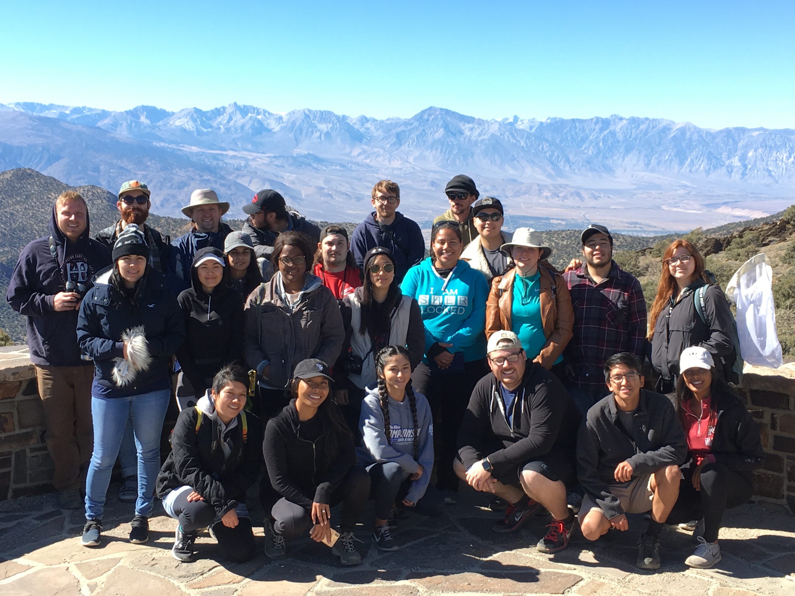 Dr. Polly Schiffman’s Conservation Biology class traveled to far eastern central California last weekend. They camped for two chilly nights, visited the gnarly bristlecone pines (Pinus longaeva — the Earth’s oldest living trees) at more than 3200 meters elevation in the White Mountains, and made stops at the Owens River, the Los Angeles aqueduct, an enormous ecosystem engineering project at Owens Lake, and the distinctive desert landscape of the Alabama Hills.