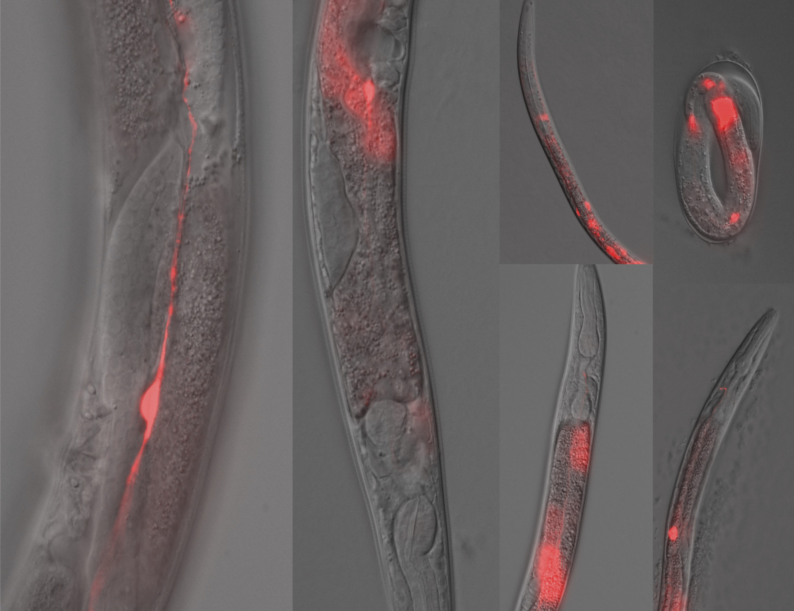 Top image: Expression of fluorescent-tagged Ppa-HSD-2 in cell types throughout the body of P. pacificus (Images via Ray Hong)